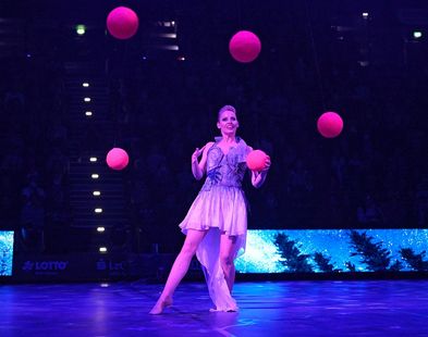Weitere Show-Höhepunkte waren die Darbietung des Duo Mirror am Luftring, das geturnte Liebesdrama des Duo Rokashkov am Vierfach-Reck oder auch das spektakuläre Basketballfest, das durch die Dunking Devils an der Trampo-Wall erzeugt wurde.