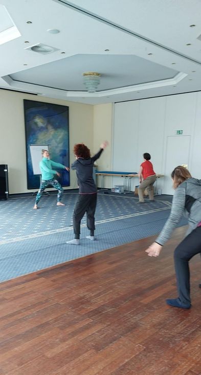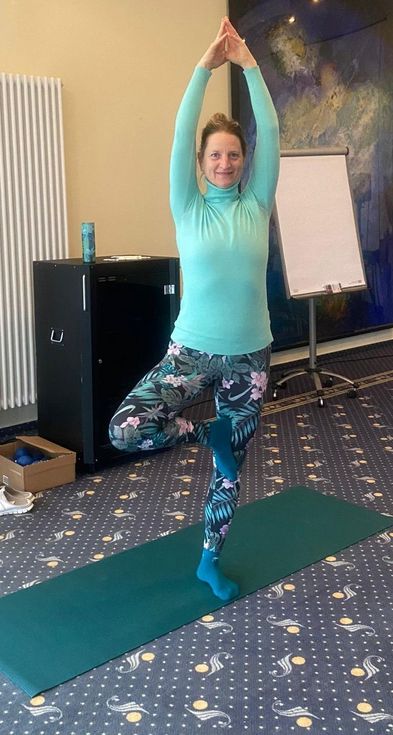 Das Wochenende startete mit einer Begrüßung und Yoga für ALLE. Dabei ging es nicht um perfekte Haltungen, sondern um das Motto "Komm wie du bist und erlebe dich in Bewegung“.