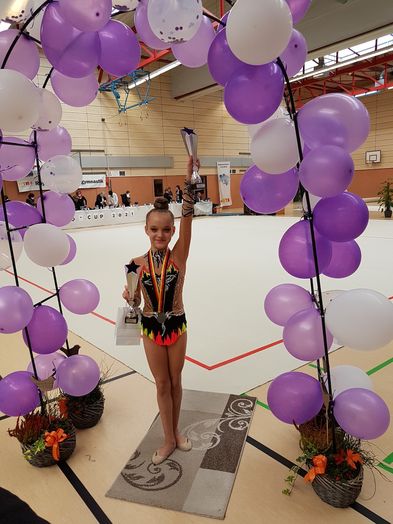 Erfolgreichste Hamburger Starterin war Michelle Christ. Souverän stand sie ihre Übungen durch und erreichte jeweils den 2. Platz mit den den Keulen und ohne Handgerät.