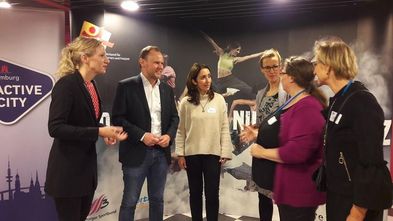 Weniger im Rampenlicht, aber ein bedeutender Bestandteil der Feuerwerksveranstaltung für den VTF ist jedes Jahr der Neujahresempfang am Rande der Vorstellungen. Rund 350 Gäste rund um den Hamburger Vereinssport und –politik waren der Einladung ins Skylight-Café in der Barclaycard Arena gefolgt. Di e beiden VTF-Geschäftsführerinnen Gerlinde Reeker und Dörte Kuhn begrüßten unter anderem Sportsenator Grote, VTF-Ethikbeauftragte Aydan Özoğuz, DTB-Generalssekretärin Michaela Röhrbein und die Leiterin des Landessportamtes Dr. Lydia Kleist.
