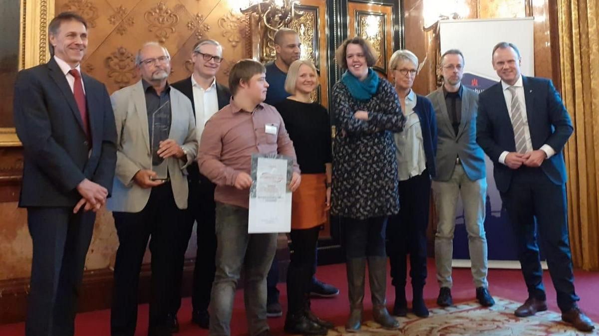 Ausgezeichnet werden Projekte, die zur Inklusion und Förderung behinderter Menschen im Hamburger Sport beitragen. Mit unter den Geehrten dabei war unsere VTF-Team-Kollegin Tanja Arndt, die im SVE als Übungsleiterin eine Inklusionsgruppe leitet.