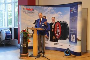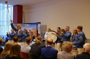 Zum Abschluss ergriff Kai Priess (Präsident des Schleswig-Holsteinischen Musikverband - kurz MVSH - und Vizepräsident des BDMV) das Wort. Er unterstrich die Wichtigkeit eines Verbandes, sowohl damals, als auch in heutiger Zeit. Gerade Corona hat uns aktuell wieder gezeigt, dass man verschiedene Dinge auf Verbandsebene einfacher lösen und als verlässlicher Partner entsprechende Hilfestellung an die einzelnen Vereine weitergeben kann.“ Insbesondere hob er das ehrenamtliche Engagement auf Verbandsebene jedes Einzelnen hervor. Dies quittierten die Gäste mit viel Applaus und Kopfnicken.