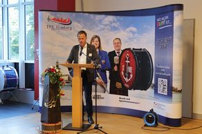 Dörte Kuhn erinnerte in ihrer eigenen Rede an verschiedene TPK-Veranstaltungen, die sie als VTF- Vorsitzende besucht hatte. Zuletzt war sie zu Gast beim Galakonzert des Landesspielleute Orchesters der TPK Hamburg (kurz: LSO), im April 2022.