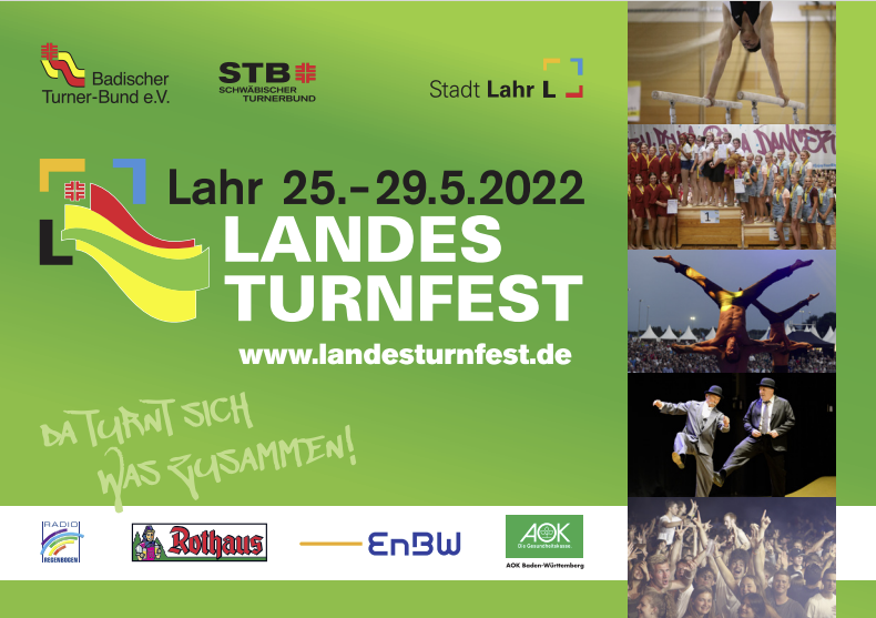 Meldung des Badischen Turner-Bundes vom 27.10.2021 - Lahr im Schwarzwald wird vom 25. bis 29. Mai 2022 (Christi Himmelfahrt) das erste Landesturnfest nach der Coronapause und zugleich deutschlandweit einzige im Jahr 2022 erleben.